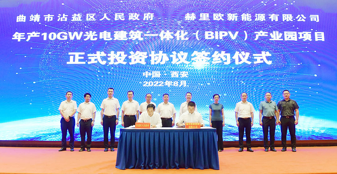 热烈庆祝赫里欧新能源有限公司与曲靖市沾益区人民政府正式签署“新世代光电建筑一体化(BIPV)产业园项目”投资合作协议。项目BIPV耦合储能技术,全面拓展和开发国内建筑领域碳中和市场,为新型电力系统的构建贡献力量,为中国“碳达峰、碳中和”战略的实施落地携手努力。