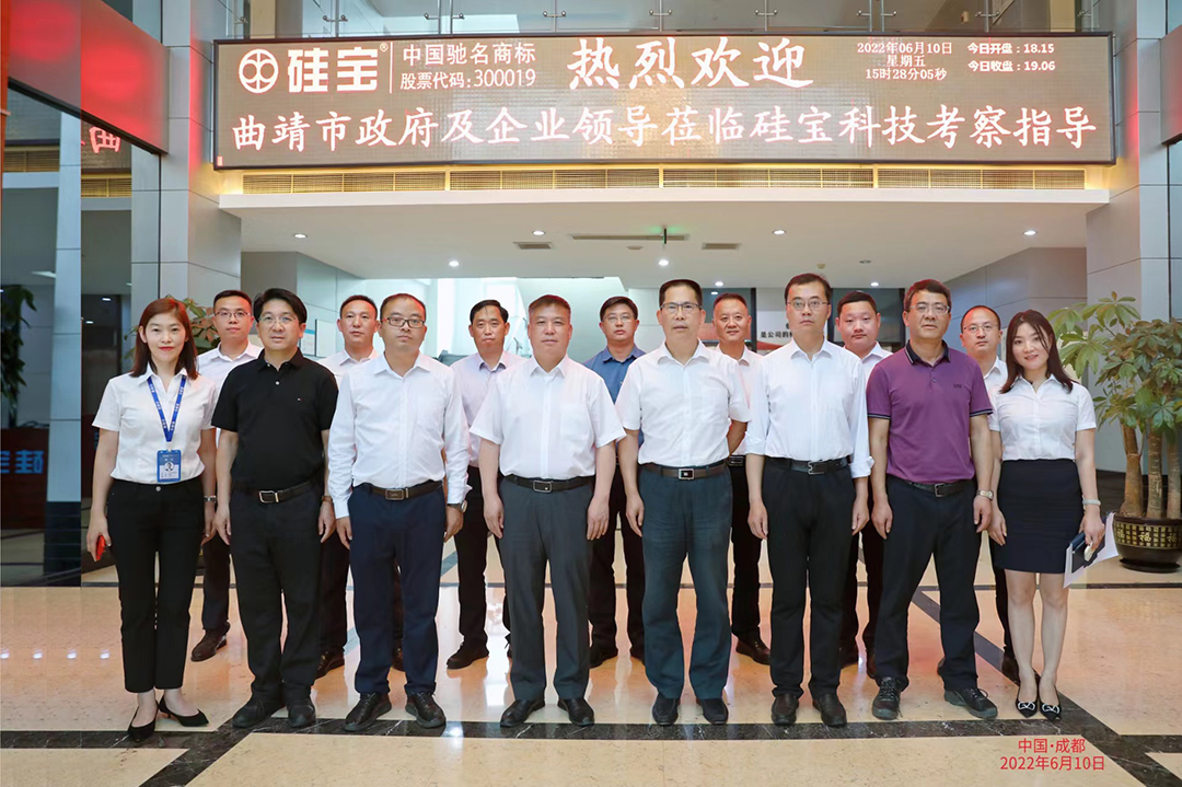 6月10日,曲靖市市委副书记、市长李先祥率领由市政府秘书长赵松,市投促局局长罗雁龙,市农业农村局局长陶汝平,宣威市委副书记、市长许韶发,沾益区委副书记、代区长刘清,陆良县委副书记、代县长方国营等组成的曲靖市政府考察团莅临成都,在赫里欧新能源战略合作伙伴——杭州五八企服园区发展有限公司执行总裁林龙、成都硅宝科技股份有限公司董事长王有治、成都环美园林生态股份有限公司执行总经理孔垂阳等人的陪同下,实地考察硅宝科技及赫里欧新能源与上市公司爱众股份合作的“成都硅宝科技BIPV光伏发电停车棚示范项目”。
