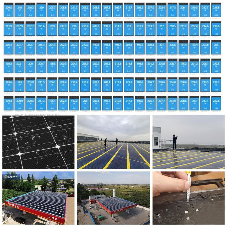 中国石油中宁古城LNG加气站BIPV发电项目位于宁夏自治区中宁古城的中石油中宁古城加油站项目,该项目于2021年7月28日开工建设,8月22日并网发电。项目是由过去的加油站提高了原有站房的防爆等级,改建为LNG加气站。加气区罩棚已经运行8年,屋面结构为轻钢网架结构,屋面彩钢瓦锈蚀需要更换。经改造设计院单位核算屋面只能安装平均重量不超过13kg/m2的面层材料。为了保持结构设计屋面荷载要求,本项目改造设计直接采用了屋面发电建材的一体化设计思路,用赫里欧的光伏瓦直接更换原来的旧彩钢瓦,实现了罩棚上方的光伏发电和满足结构荷载许可范围。