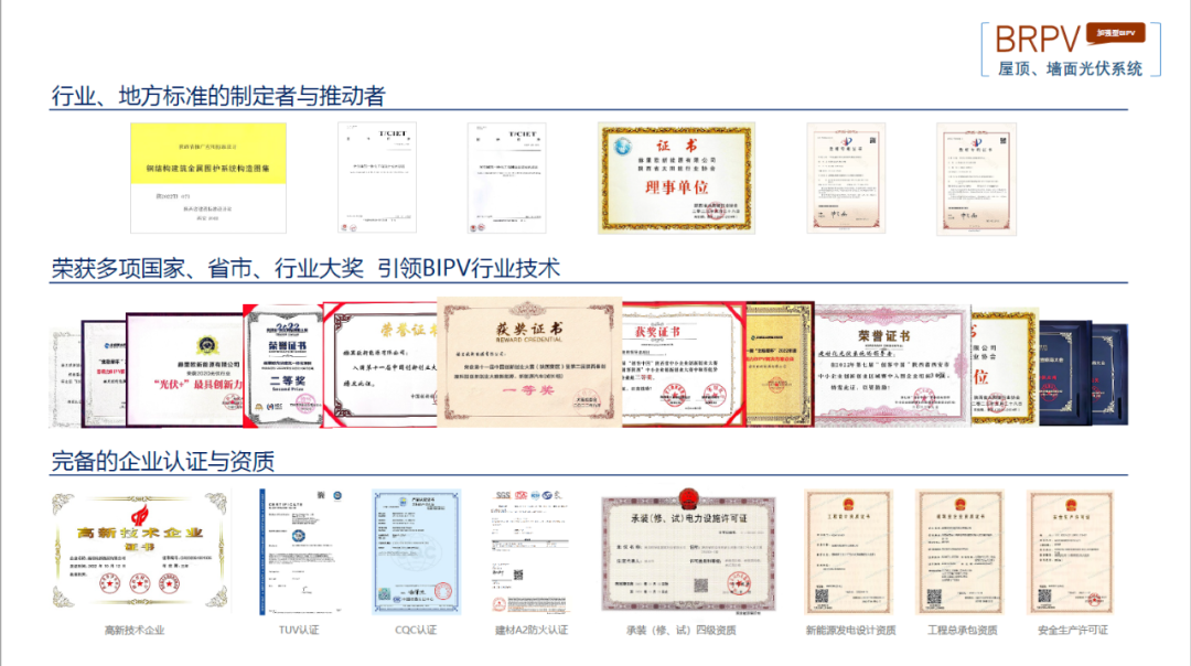 赫里欧作为光伏行业、地方标准的制定者和推动者,荣获多项国家、省市、行业大奖引领BIPV行业技术,具有全面的企业认证与资质。