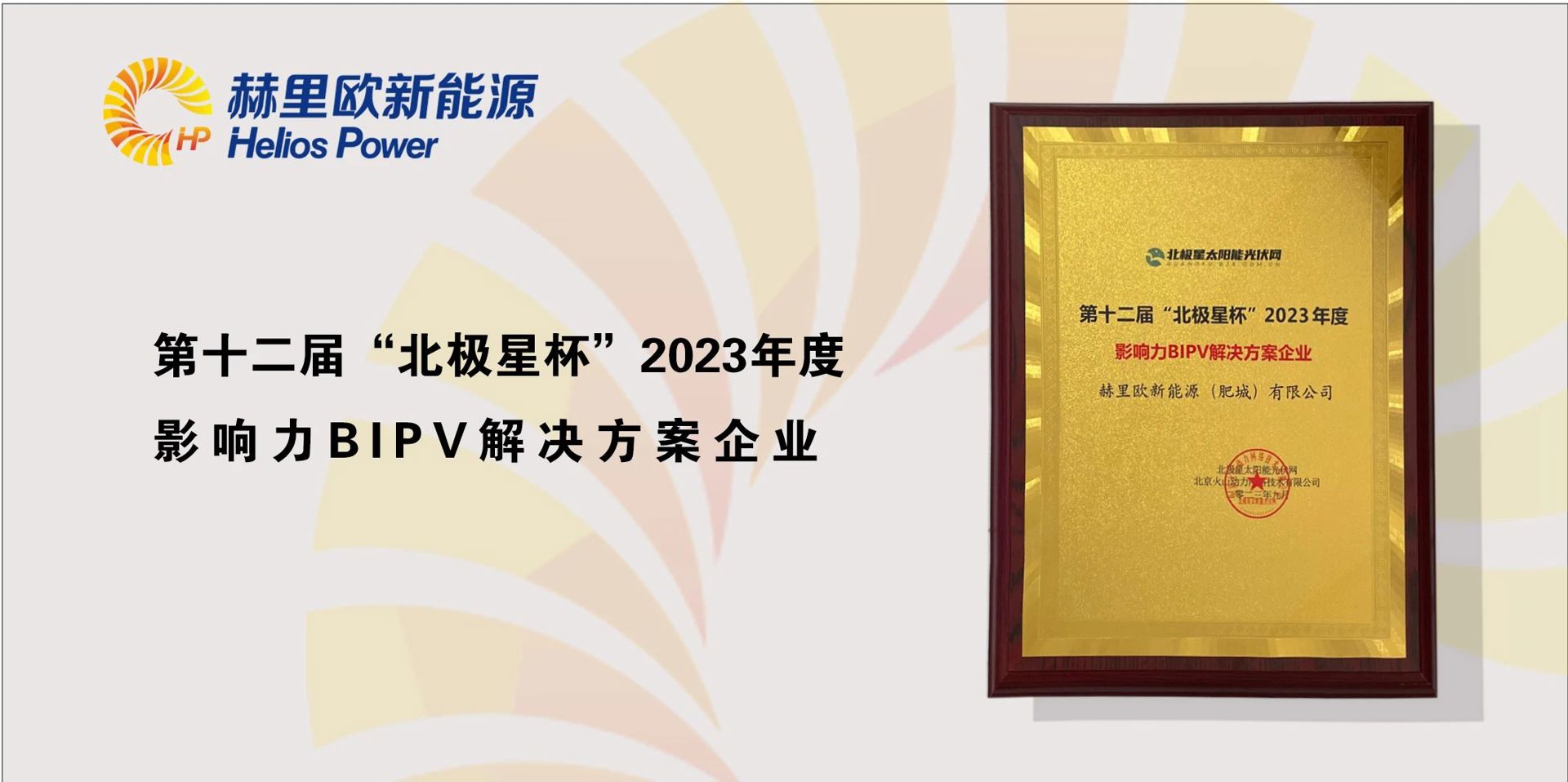 本届论坛以“共绘能源底色,共享零碳未来”为主题。邀请政府部门、专家学者、行业协会、相关企业等共聚一堂,协同创新、合作共赢,共同为行业、产业健康发展献计献策。在这一备受关注的盛会上,赫里欧新能源(肥城)有限公司再次荣获2023年度“影响力BIPV解决方案企业”奖项 。