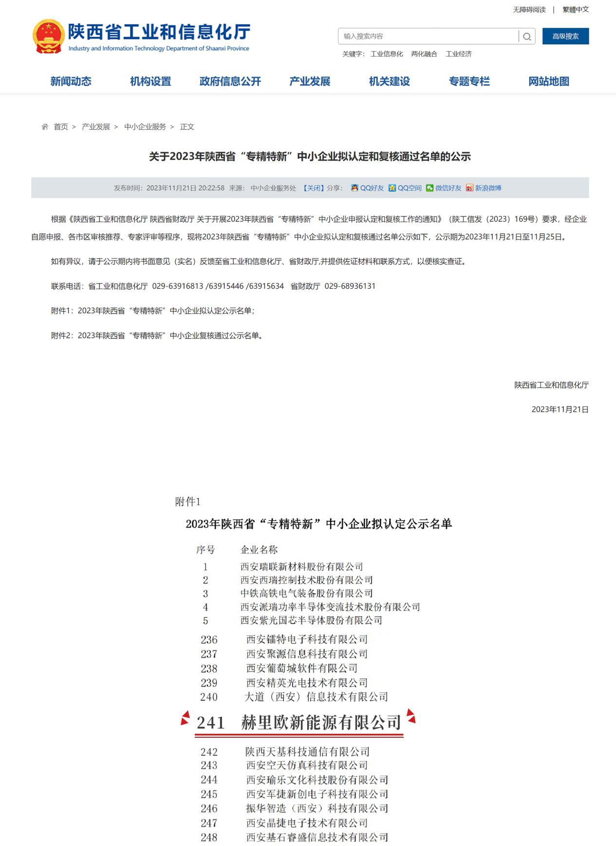近日,陕西省工业和信息化厅公布了2023年陕西省“专精特新”中小企业名单,赫里欧新能源有限公司顺利通过认定,被评为“专精特新”企业。这一殊荣不仅是对赫里欧新能源在建设“专业化、精细化、特色化、新颖化”企业中取得成果的认可,也是对赫里欧新能源在建筑与光伏行业的创新能力、研发水平及企业成长性的充分肯定。