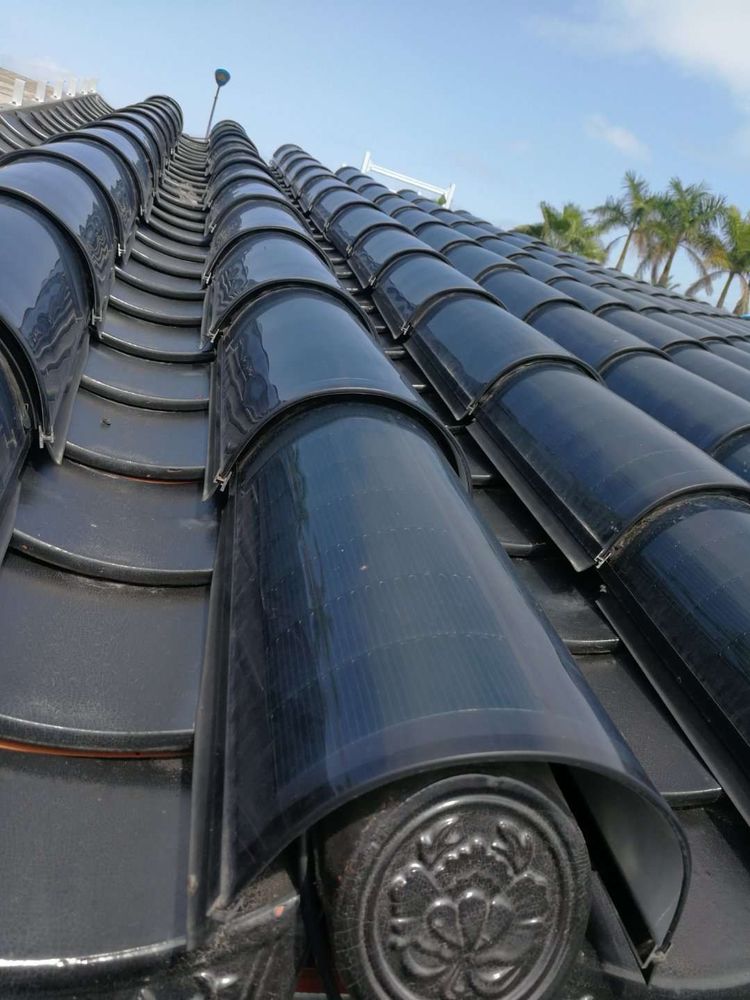 琉璃瓦式的BIPV产品,从外观上是目前已知BIPV产品的精品,兼顾发电和建筑美学,缺点是单位面积容量低,价格高昂,仍是高压直流系统。