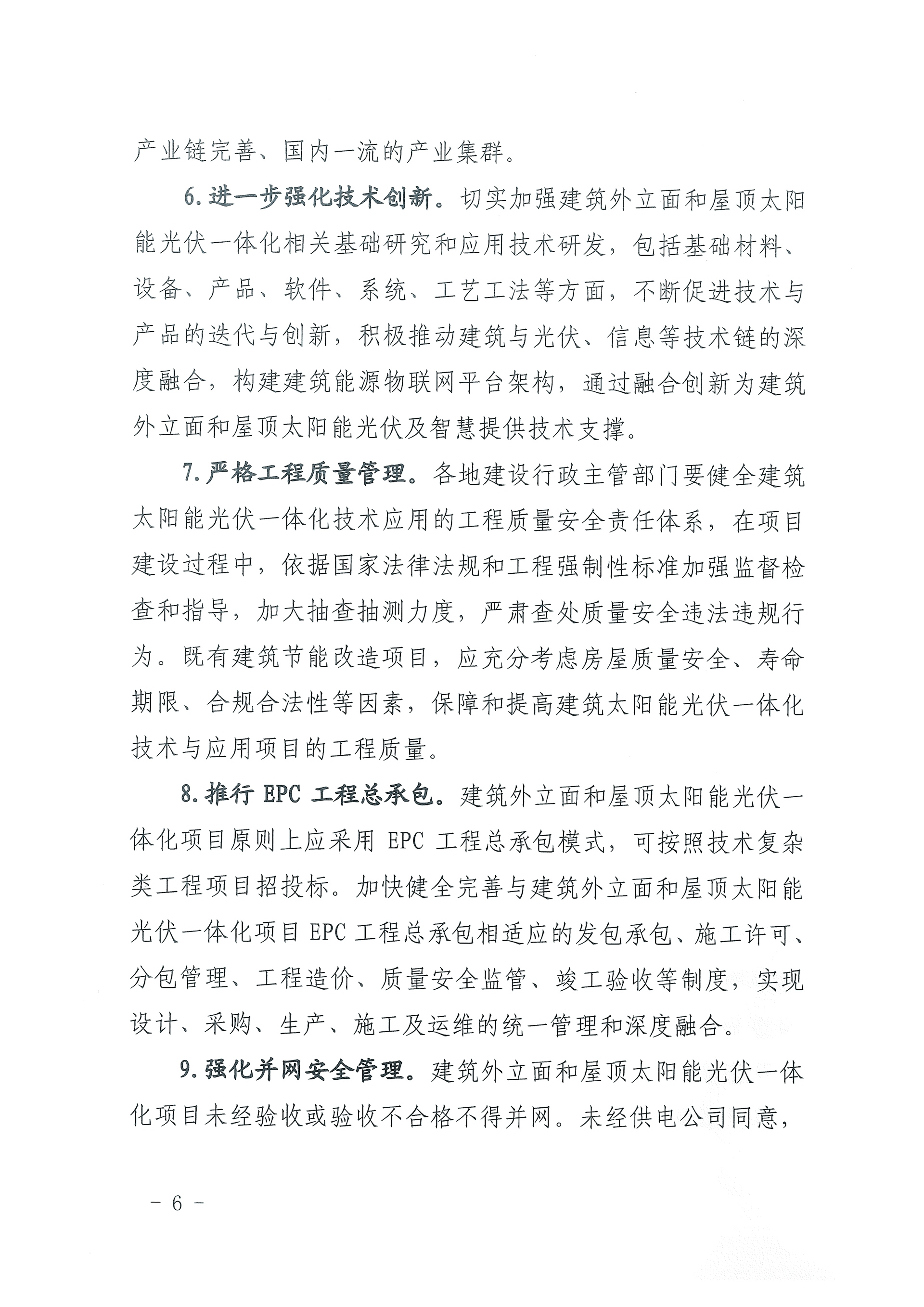 城乡共同实现能源的低碳发展首要工作就是推动城乡建筑产业和建筑用能的低碳发展。将建筑外立面和屋顶太阳能光伏一体化技术应用作为我国实现“双碳”目标的重要战略措施,是“十四五”建筑节能与绿色建筑重点发展方向,《意见》的发布为此指明方向,要求统筹城市更新、旧城改造、乡村振兴、“零碳”试点等工作,在新建建筑、既有建筑节能改造及农房建设中积极推广应用,实现建筑绿色清洁用能对常规能源的替代。政府投资或财政补助的公共建筑、保障性住房以及涉及政府或政府给予政策性补贴的项目,应采用建筑太阳能光伏一体化技术。