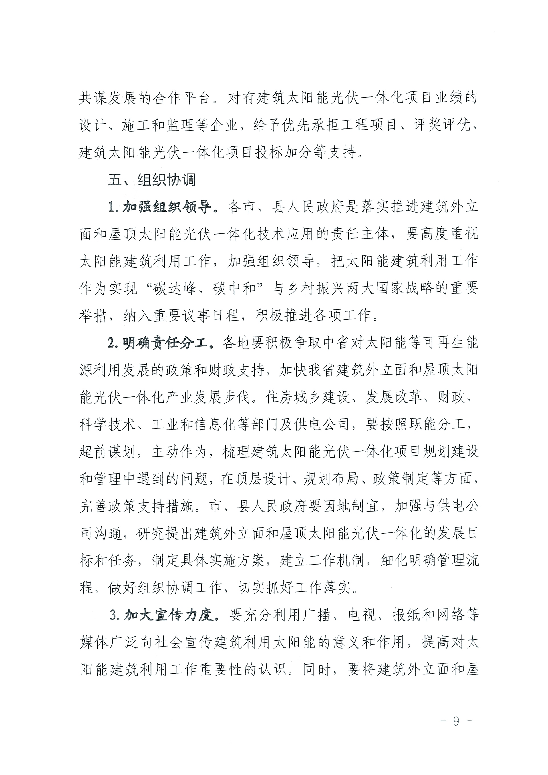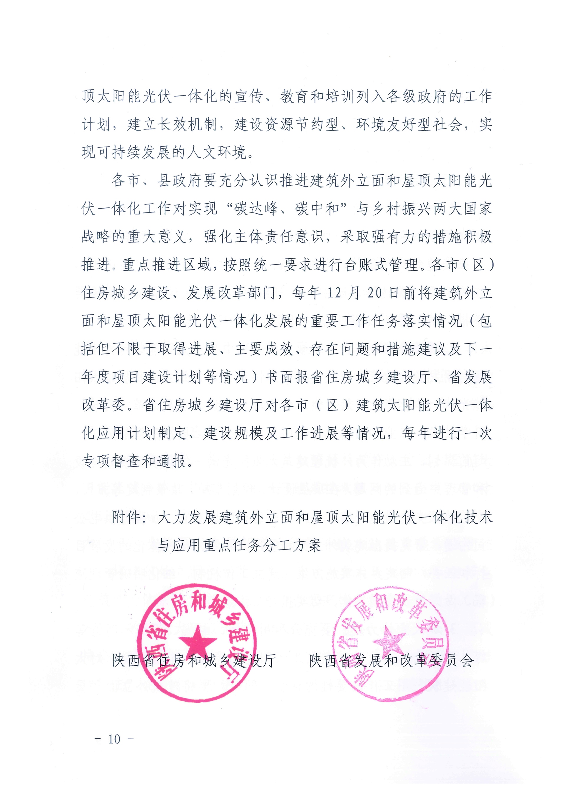 近日,陕西省住房和城乡建设厅、省发展和改革委员会、省科学技术厅、省工业和信息化厅、省财政厅、省生态环境厅、省能源局、中国人民银行西安分行、国网陕西省电力有限公司等九部门联合印发《关于大力发展建筑外立面和屋顶太阳能光伏一体化技术与应用的实施意见》(陕建发〈2023〉91号)(以下简称《意见》)。强调推进建筑太阳能光伏一体化建设,到2025年新建公共机构建筑、新建厂房屋顶光伏覆盖率力争达到50%,并推动既有公共建筑屋顶加装太阳能光伏系统。